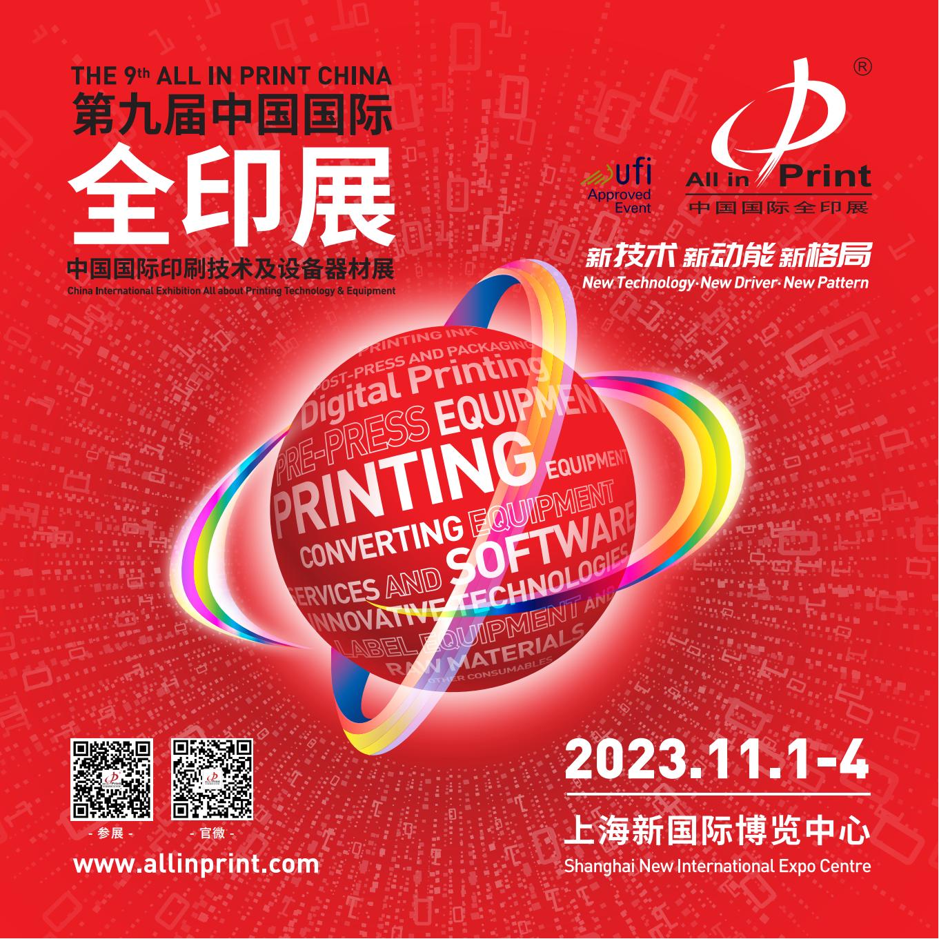 第九屆中國(guó)國(guó)際全印展定檔于2023年11月1-4日在上海新國(guó)際博覽中心舉辦,更大的國(guó)際舞臺(tái),第九屆全印展展出規(guī)模超過(guò)120,000平方米,預(yù)計(jì)將匯聚超千家展商、超十萬(wàn)人次全球買家。