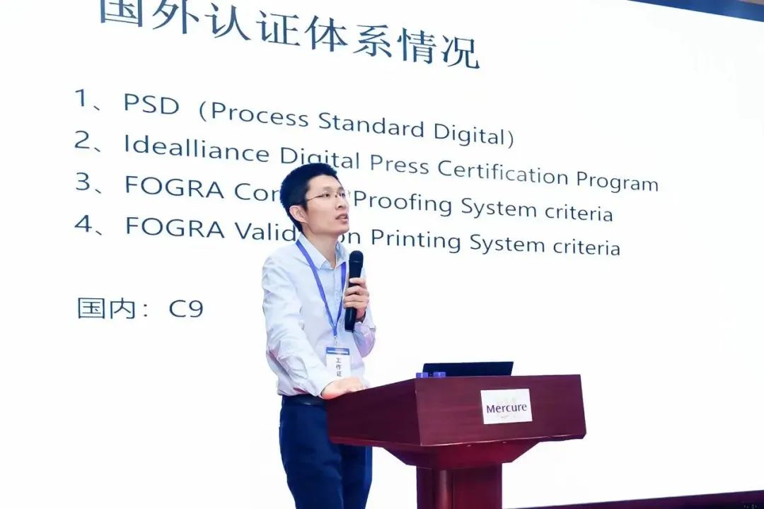 主題演講環節,中印科院的C9工程師李志杰產品總監楊寧分別做了C9 數字印刷評價體系介紹及C9印刷質量管控數據分析報告。人民教育出版社出版部高級主管郭緒做了《基于標準的出版社印裝供應商管理體系的建設探索》的演講。童趣出版有限公司出版部主任馬興旺分享了《印裝供應商管理體系建設經驗及需求》。浙江新華數碼印務有限公司副總經理劉國鈞分享了浙江新華在質量提升方面的實踐經驗。富士膠片商業創新(中國)有限公司北方區出版印刷行業銷售經理張林介紹了圖靈在出版印刷領域的應用及案例。北京盛通印刷股份有限公司品控總監王釗分享了盛通印刷質量管控數字化、標準化的踐行。深圳圣德京粵科技有限公司副總經理兼產品研發總監葉明介紹了應對小批量、重印補印高及環保等業務,圣德高速噴墨數字印刷系統的卓越表現。