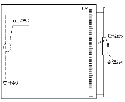筆者自主研發設計了紅外線輔助對標定位裝置,包括紅外線“十字”定位儀、LED超薄強發光片、四方向活動鋁合金固定支架、毫米標尺、24VDC直流電源、控制開關。