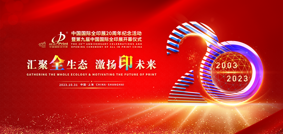 2023年,中國國際全印展迎來了成立二十周年的特別時刻,值此之際,中國國際全印展20周年紀念活動暨第九屆全印展開幕儀式將于10月31日在上海同期舉辦,匯聚行業同仁、精英及上下游人士共話行業發展前景,共享全印展20年來的喜悅與榮光。
