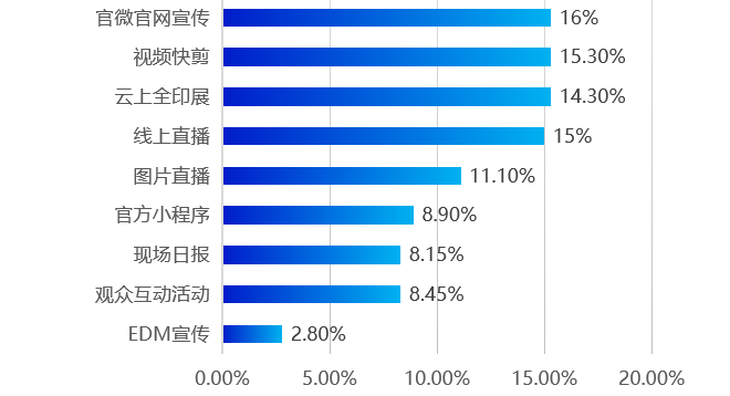 關于全印展的各項宣傳產品,受訪者認知也較為平均。本屆全印展將通過官方微信、小程序、多媒體平臺融合宣傳,全方位抵達目標受眾,助力全球合作伙伴展現更多精彩。