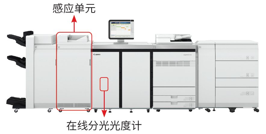 對于印刷穩(wěn)定性要求更苛刻的用戶,選配感應(yīng)單元是最好的解決方案。imagePRESS V1000的感應(yīng)單元由一套正反的高速掃描器和一個分光光度計組成,在<印前>和<印中>對正背套準、色彩密度等進行自動調(diào)整,從而減少手工調(diào)整需要消耗的時間和體力,并且在整個打印運行過程中實時監(jiān)控和維護這些設(shè)置,從而呈現(xiàn)更高一致性的打印結(jié)果。