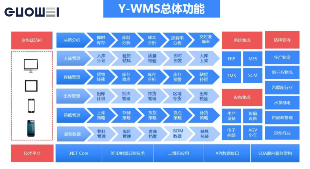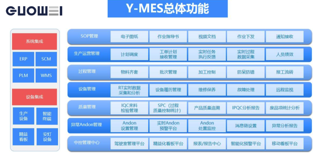 在多年制造系統實施經驗沉淀下,國威智能將信息技術與生產制造深度融合,現已打造完成MES制造執行管理系統、WMS智能倉儲管理系統、BI Report智能數字看板、MEPER低代碼管理平臺等智能制造軟硬件一體化交付解決方案。