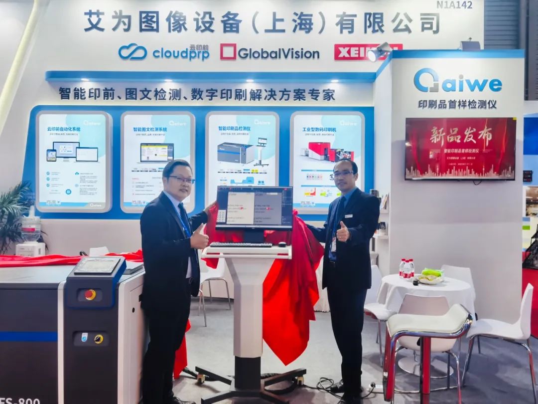 展會首日,艾為公司為自主創新研發的新產品智能印刷品首樣檢測儀FS-800和云印前自動化平臺4.0舉行了隆重的新品首發儀式。