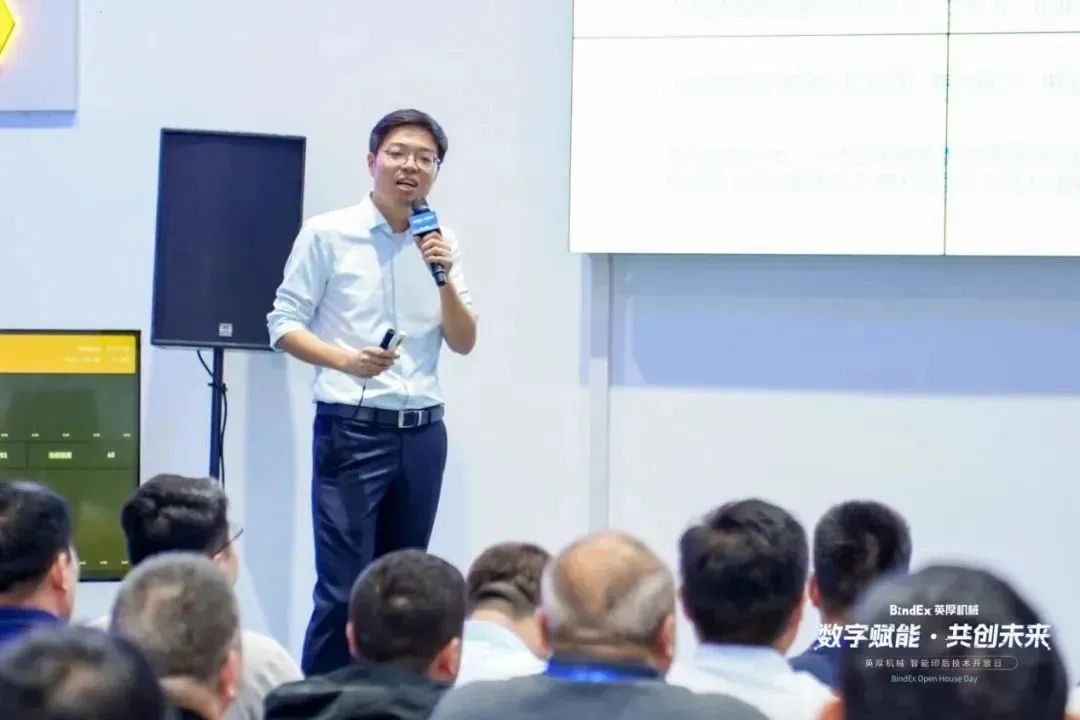 活動伊始,平湖英厚機械總經理李昂以“數字驅動智能制造”為題發表了講話。他表示,隨著印刷業數字化、智能化水平逐漸提升,印刷企業對數字化理解程度提高,企業數字化轉型迫在眉睫。平湖英厚機械也緊跟市場需求,專研印刷智能工廠解決方案。不僅在硬件方面努力鉆研,還積極探索和開發軟件方面的新技術和新產品,致力于開發出智能化、高效化、安全化的軟件產品,以打通數據壁壘,幫助管理者了解實時生產進度,及時處理預警情況,助力企業智能高效生產。