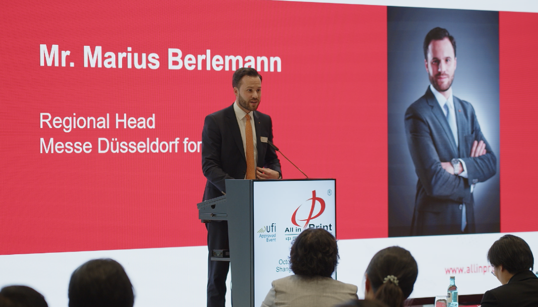 杜塞爾多夫展覽集團公司亞洲中心負責人、中國區董事總經理Marius Berlemann先生代表全印展主辦方對全印展在亞洲印刷業中發揮的重要作用表示肯定。全印展2023的展出面積達11萬平方米,吸引了超過10萬名觀眾,超過1,000家國內外頂級企業參展,展出面積和觀眾人數均創歷史新高。Marius Berlemann先生強調,全印展將繼續保持行業領先地位,促進亞洲印刷業的創新和發展。