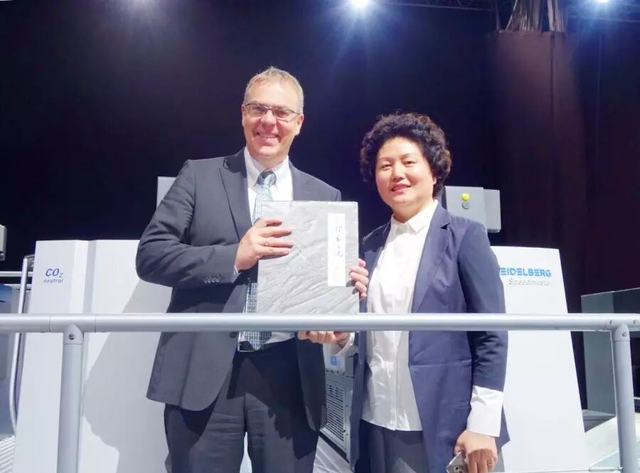 中國印刷代表團第一站前往1號海德堡館,在本屆展會上,海德堡選擇與合作伙伴共同分享這一展館,王巖鑌司長及中國文化產業發展集團公司董事總經理、中國印刷技術協會副理事長兼秘書長、北京科印傳媒文化股份有限公司董事長陳彥女士作為中國國際全印展主辦方領導,拜訪了海德堡以及作為合作伙伴共享展臺的長榮股份負責人,邀請海德堡再次參與本屆全印展,海德堡負責人表示:中國是海德堡全球最大市場,并對參與全印展表示出濃厚的興趣。據長榮負責人介紹,今年全印展上長榮的參展規模已由上屆700平方米擴容到1000平方米。