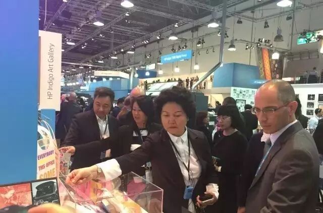 在17號館,惠普以超過6000多平方米的參展面積,占據了整個展館,成為本次drupa展會規模最大的展商,王巖鑌司長一行蒞臨惠普展位,聽取企業負責人講解,了解惠普設備終端產品。